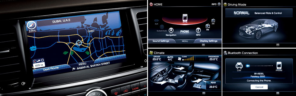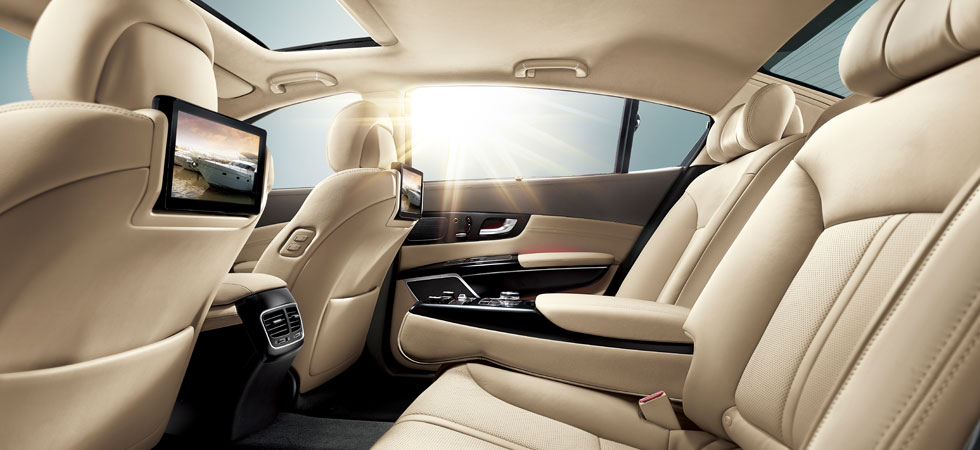Passengers in the rear will enjoy the ultimate in travel comfort thanks to Quoris’ luxurious rear seats that provide three levels of seat warming capability, power reclining, and firm yet supple thigh, torso and lumbar support. The center arm rest and integrated multimedia control box can be retracted to create ample seating for three adults.