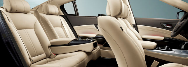 The exterior concept of elegant simplicity and balanced proportions is carried over to the Quoris’ interior to create the most spacious cabin in the segment. Luxurious materials and a sophisticated aesthetic design promise occupants a sensation of high-quality and understated modernity.