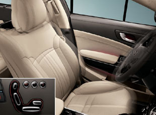 Quoris’ 14-way electrically adjustable driver’s seat not only addresses nearly every possible support angle, but also stores two customized seat position preferences for maximum convenience.