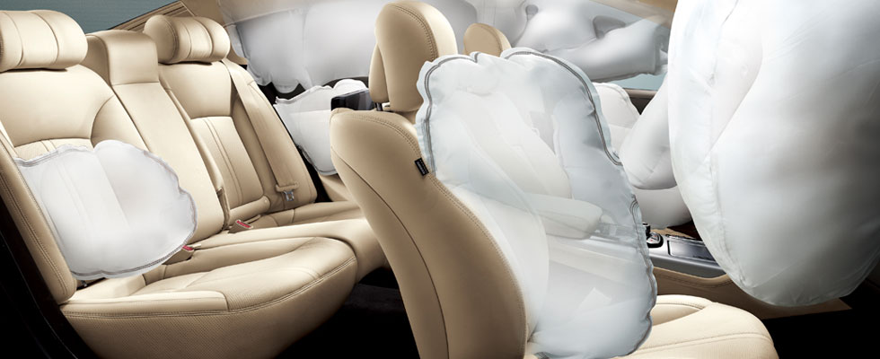 Quoris provides an exceptional level of protection from the impact of collisions for all occupants thanks to dual front, twin front seat side and full-length curtain airbags, plus twin rear seat side airbags and a driver’s knee bag. An intelligent airbag mechanism ensures deployment at an appropriate pressure based on the intensity of the collision to prevent excess injury.