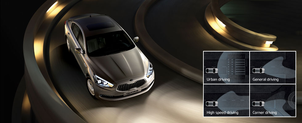 For optimal visibility when driving at night, AFLS (Adaptive Front Lighting System) works in conjunction with the full LED headlights to deliver a continuously varying beam pattern depending on vehicle speed and steering angle.